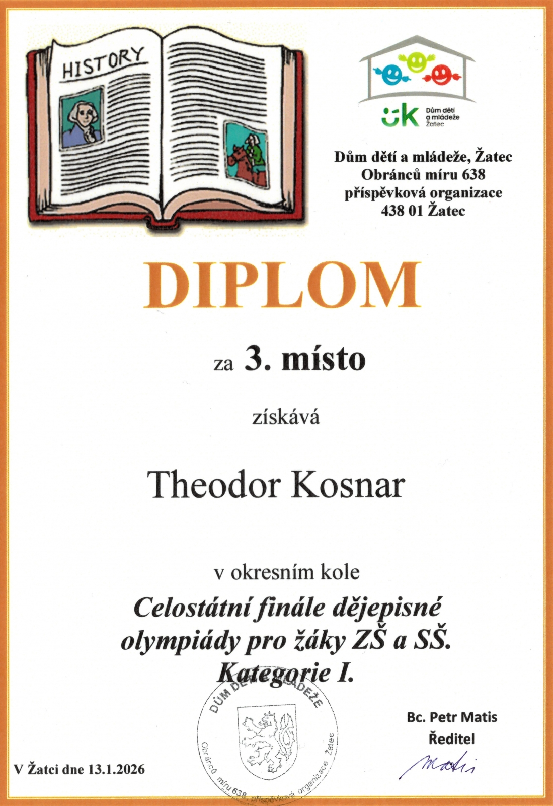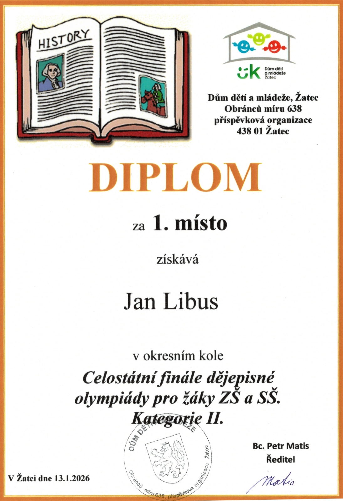 Nejlepší řešitelé postoupí do krajského kola, které proběhne 7. listopadu 2025. Finále soutěže v Poslanecké sněmovně Parlamentu ČR se uskuteční 8. prosince 2025 a my doufáme, že se tak stane za účasti některých z našich úspěšných studentů.